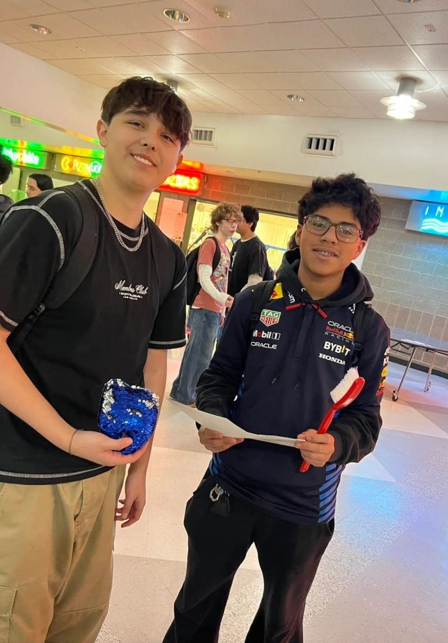 - Students held giant toothbrushes like they were trophies